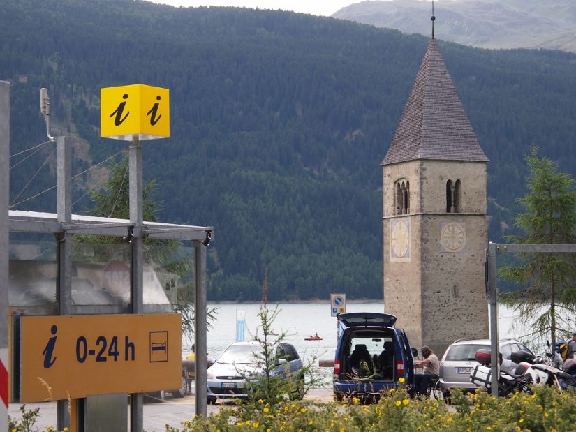 見えている尖塔(鐘楼)はレジア湖の中に建っている。